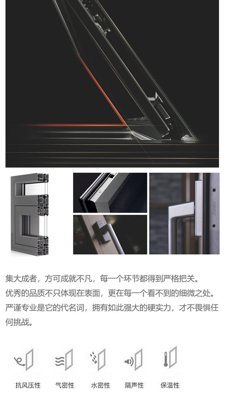 本公司是一家集铝合金门窗开发、生产、销售为一体的综合性厂家。主要生产各类高档钛镁合金重型门、推拉门、拼格门、平开门、平开窗、推拉窗等系列产品。引进全套德国技术和设备,设备先进、技术力量强大、资金雄厚、管理严格、有足够的供货能力和强大的生产技术保障。是一家从事门窗生产的专业实力厂家。
